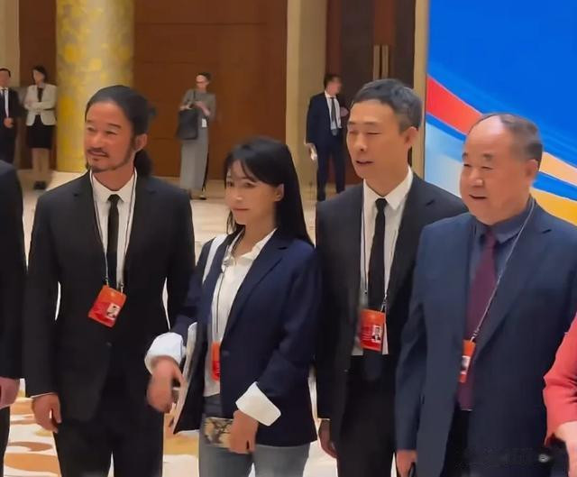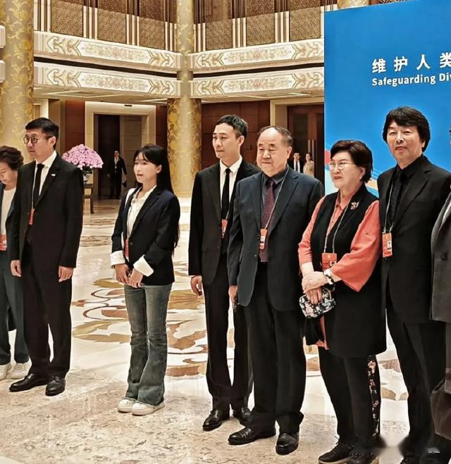 当天著名作家莫言、刘震云也到现场了,俩人隔一人站着,此次出席活动让大家很惊喜。